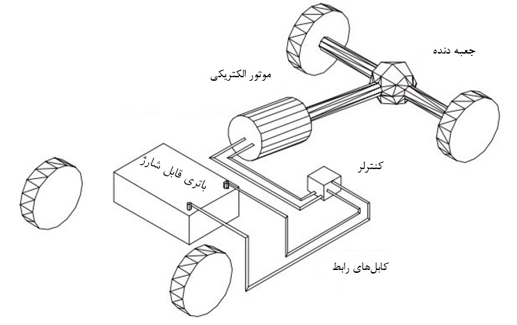 شکل 1: چیدمان خودروی تمام الکتریک
