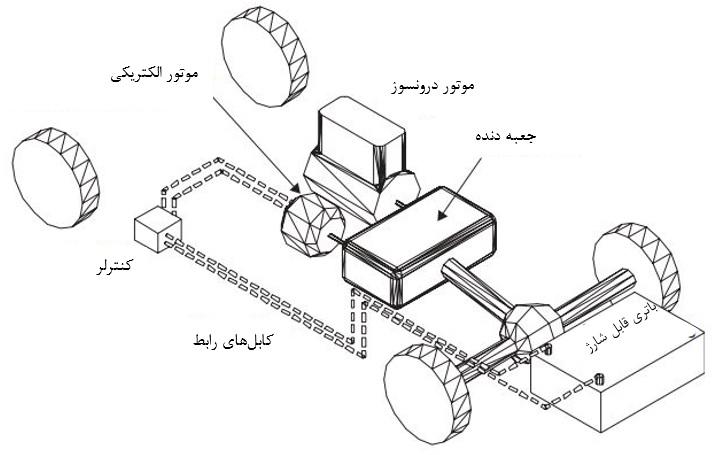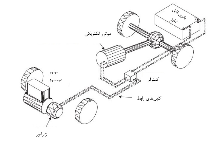 شکل 2: شماتیک یک خودروی هیبریدی با چیدمان سری